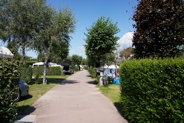 De plaatsen bieden 50 tot 130 m² privé‑ruimte, afgebakend met heggen die uw privacy beschermen en tegelijk voor een groene, rustgevende sfeer zorgen.
