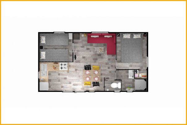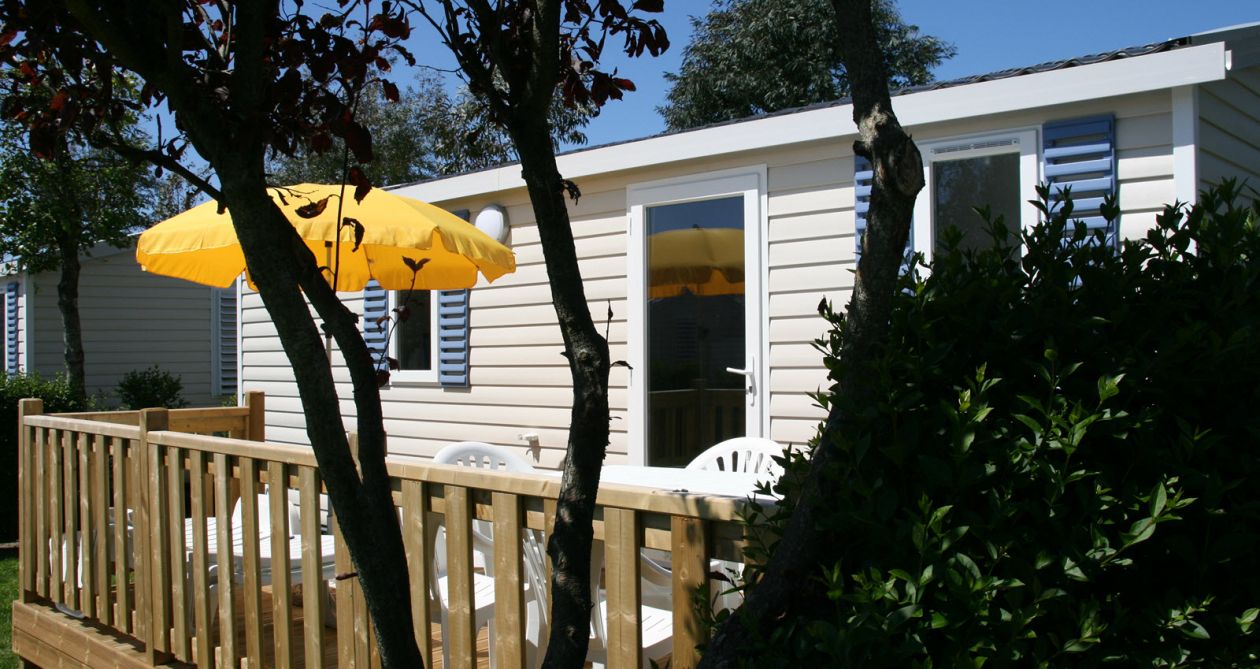 Met zijn grote woonkamer en onoverdekt verhoogd terras biedt het een zeer comfortabele ruimte voor 4 personen. Met een oppervlakte van 30 m² is het uitgerust met 2 slaapkamers, gescheiden door de woonkamer. Beschikbaar voor wekelijkse, tweewekelijkse of weekendverhuur (2 nachten).