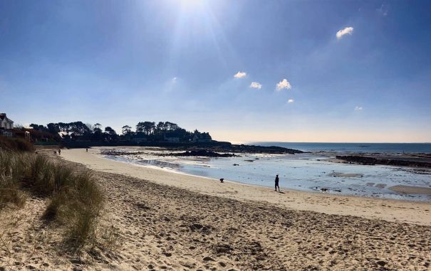 Voor de camping: het strand van Kervillen bij **eb** met coëfficiënt 108